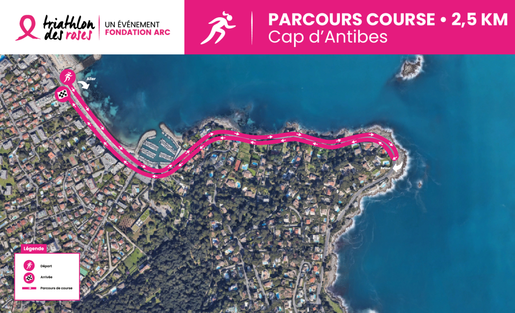 À l’issue de l’épreuve cyclisme, vous déposerez votre vélo dans le parc à vélo, à son emplacement initial, avant de partir à pied pour 2,5 km, en direction du Cap d’Antibes. Pour les équipes en relais c’est dans le parc à vélo que vous passerez à nouveau le témoin à la coureuse / au coureur de l’équipe.